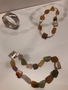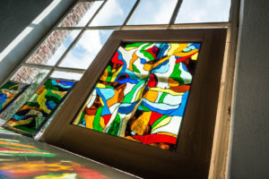 Alle kunstenaars van de galerie zijn deze middag in het kerkje en ook tijdelijk exposant Vera Damhuis is aanwezig om uitleg te geven over haar kunstwerken.
